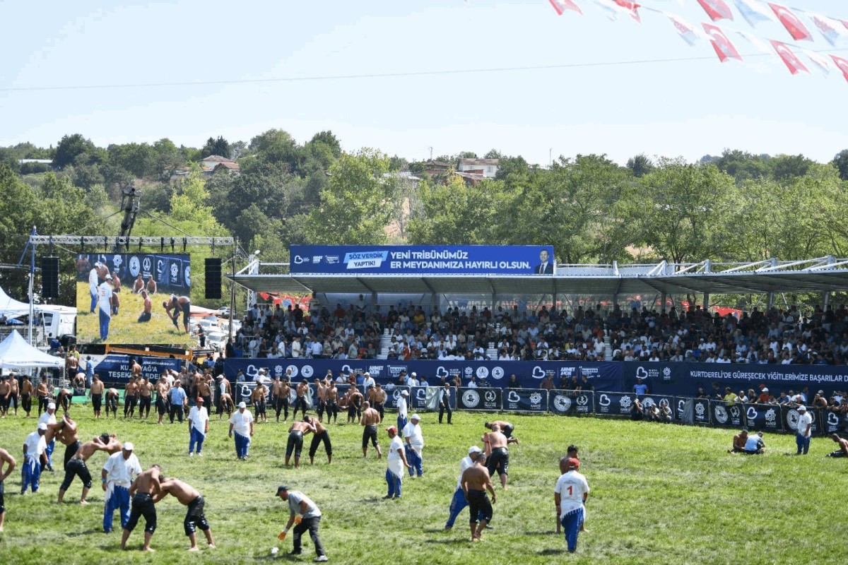 Yağlı Güreş Birliği Başkanı ve Balıkesir Büyükşehir Belediye Başkanı Ahmet Akın, geçen yıl verdiği sözü yerine getirerek Kurtdere Er Meydanı’na yeni tribünler kazandırdı. Güreşseverlerin beğenisini kazanan tribünlerin ardından Başkan Akın, önümüzdeki yıl da meydanda yenilikler yapmaya devam edeceklerinin müjdesini verdi.