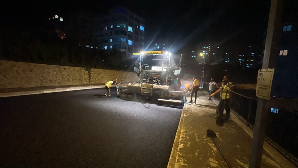 Büyükşehir Belediyesi, şehir genelinde başlattığı yol çalışmalarını sürdürüyor. Ekipler, aydınlatmanın sorun oluşturmadığı bölgelerde gece bile asfalt serimi yapıyor.