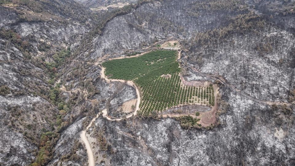 Nektarin bahçesi, etrafı küle dönen bölgede yeşil kaldı.