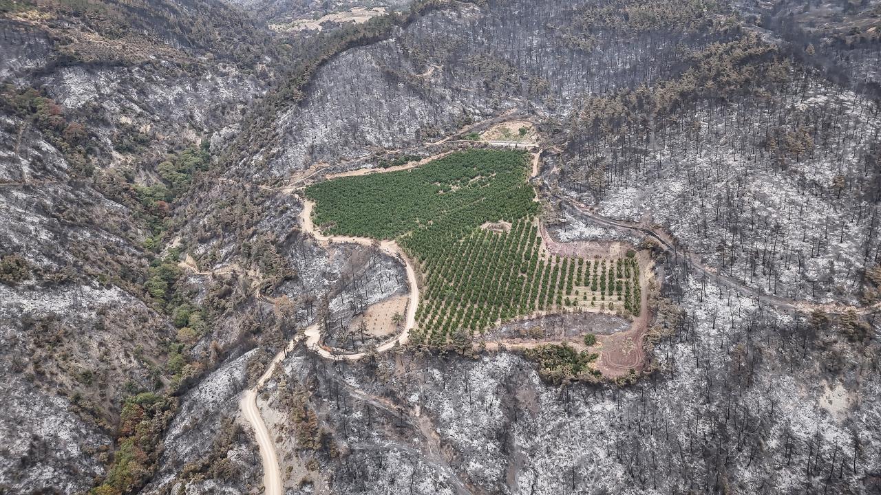 Ülgen, yangında etrafı küle dönen bölgedeki nektarin bahçesinin zarar görmediğini anlatarak, bahçenin zeminindeki kuru otları zamanında temizlediklerini, bunun da yangının sıçramamasında etkili olduğunu ifade etti.