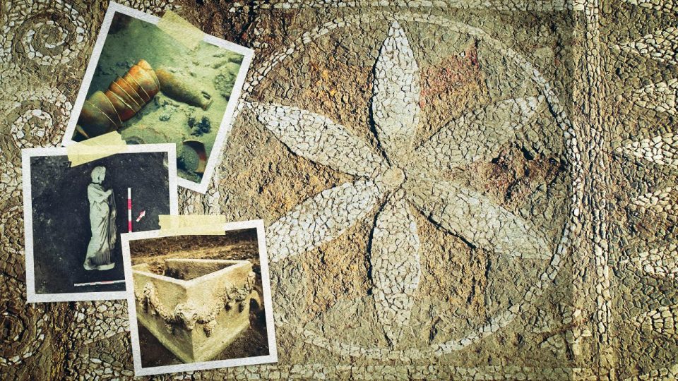 Muğla’nın Milas ilçesindeki Herakleia Antik Kenti’nde yapılan kazılarda köylüler tarafından yıllarca ahır olarak kullanılan Roma hamamının tabanında timsah, yunus, flamingo ve yılan balığı betimlemeli mozaikler ortaya çıkarıldı.