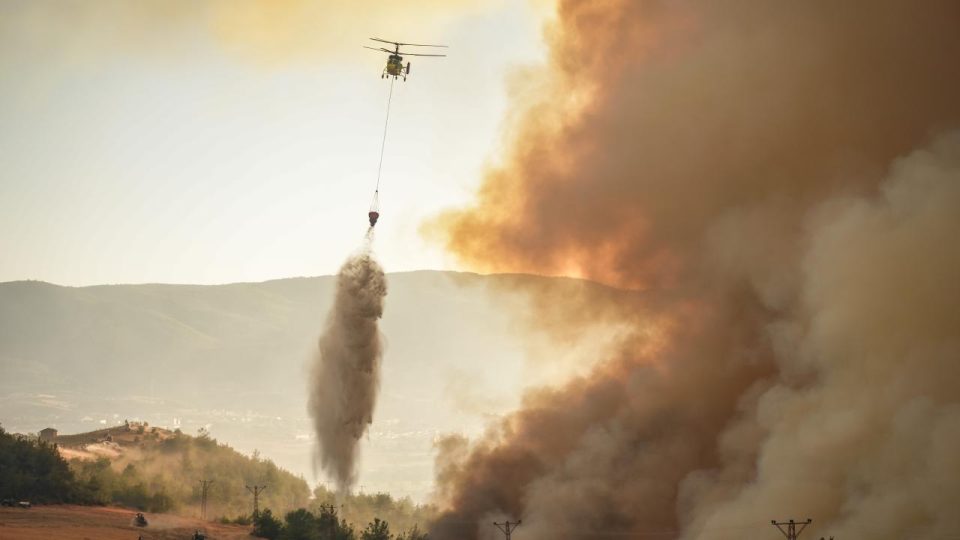 Bölgedeki hava araçları, yangın havuzları ve denizden aldıkları suyu yanan alanlara taşıyor.