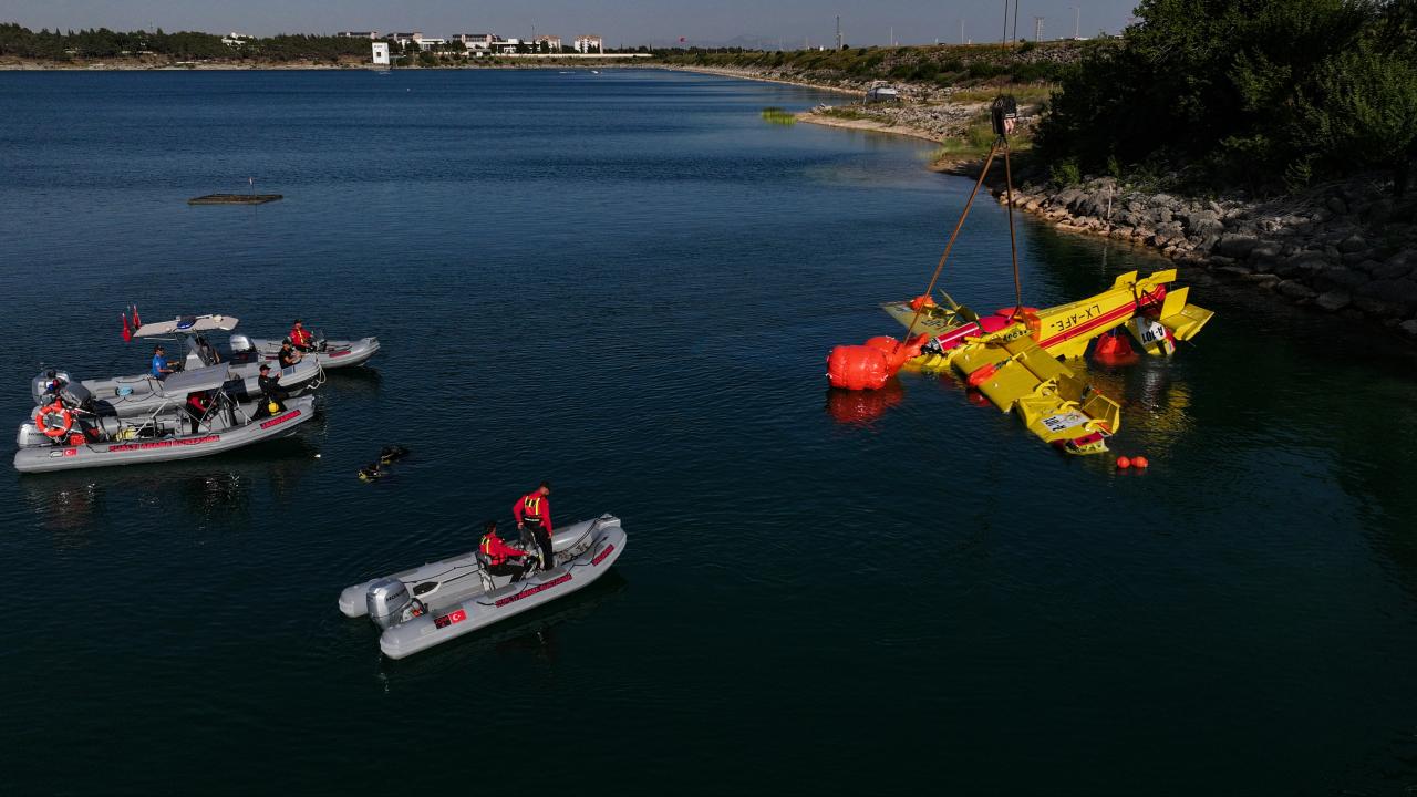 Adana’da baraj gölüne düşen yangın söndürme uçağının enkazı çıkarıldı