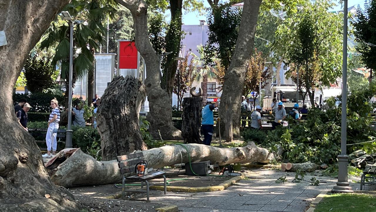 Değirmendere Yalı Mahallesi’ndeki Çınarlık Meydanı’ndaki çınar ağacından kopan büyük dal, 3 kişinin üzerine düştü.