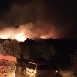 Orman Bölge Bölge Müdürlüğü ekipleri ve Antalya Büyükşehir Belediyesi Alanya İtfaiye Biriminin karadan müdahale ettiği yangının kontrol altına alınabilmesi için çalışmalar sürüyor.
