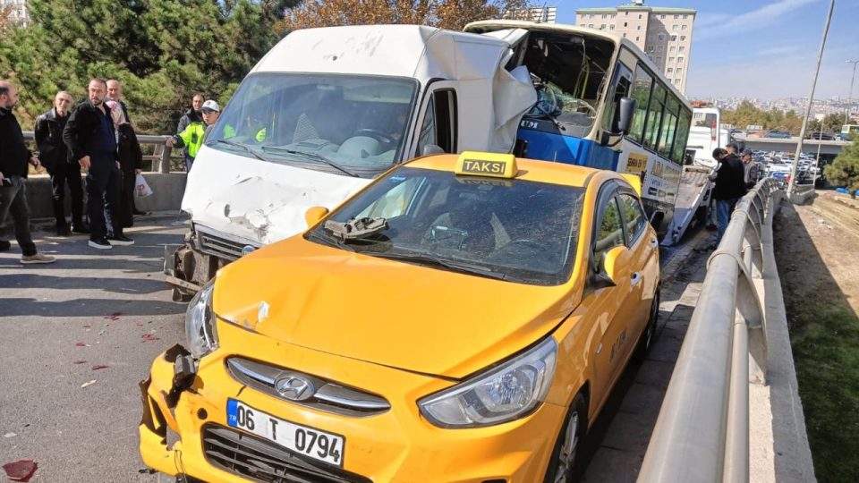 Kazaya karışan 2 minibüs, daha sonra taksi, hafif ticari araç ile iki otomobile çarptı.