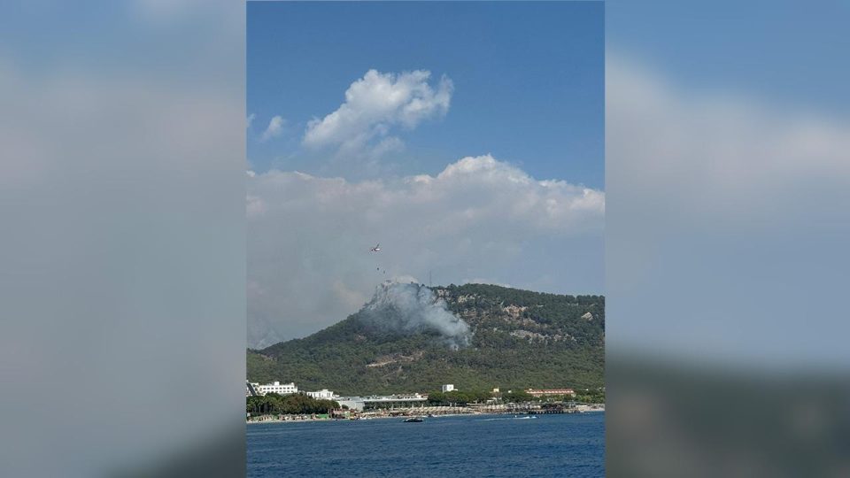 Ekipler, havadan ve karadan müdahaleyle otellere yakın bölgede etkili olan alevleri kontrol altına almaya çalışıyor.