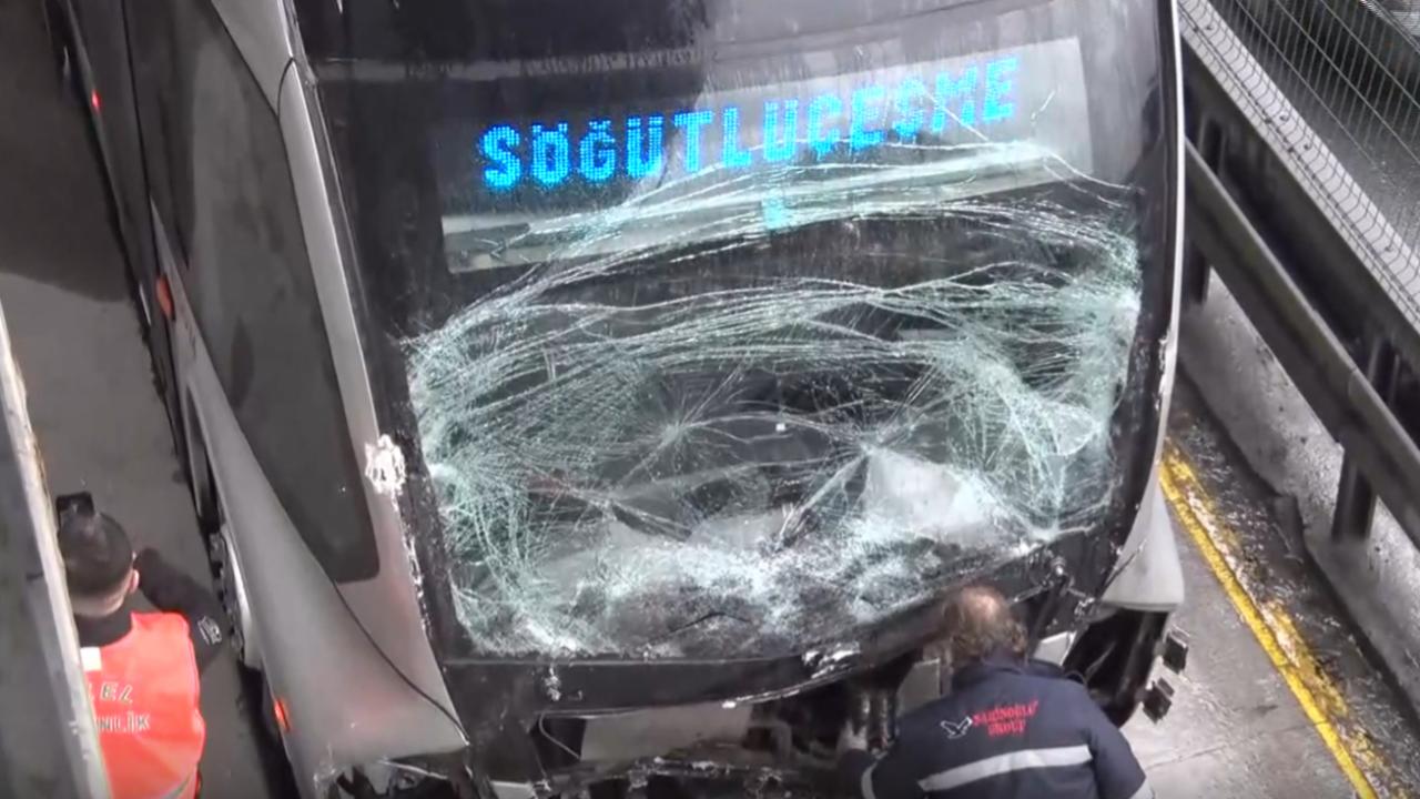 Söğütlüçeşme istikametinde seyir halindeki metrobüs, Büyükşehir Belediyesi Sosyal Tesisleri durağında bekleyen başka bir metrobüse çarptı.
