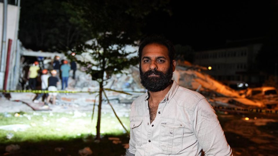 “Bir süre eve giremedik. Sonra enkazın gürültüsü eve kadar gelmişti. Enkaz alanına geldim halen daha buradayım. Bir ara eve şarj aletini almak için girdim. Bir baktım evde her şey yerle bir olmuş. Televizyon paramparça, diğer eşyalar yerlerde. Panik yaşadık. Halen panik devam ediyor. Böyle bir depremi daha önce İzmir’de yaşamıştım ama bu çok şiddetliydi.”