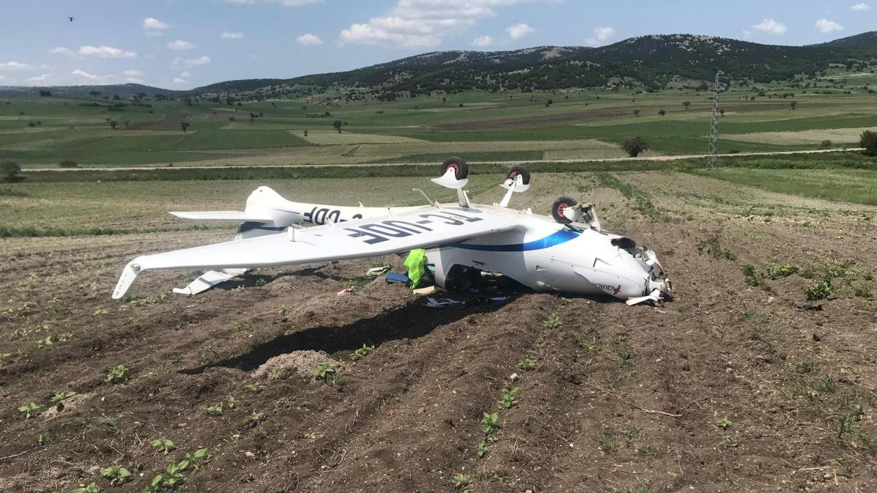 Bilecik’te zorunlu iniş yapan eğitim uçağı ters döndü