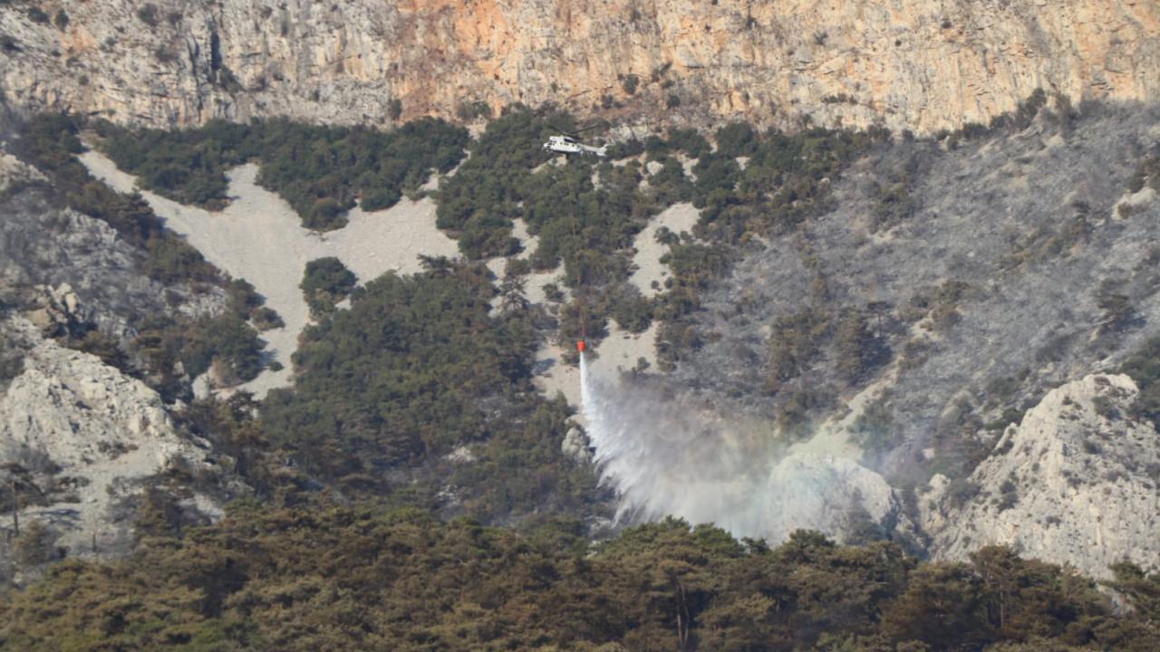 Ekipler, 3 helikopter, 1 İHA, 30 arazöz, 37 iş ve hizmet aracıyla yaptıkları müdahaleyle yangını kontrol altına aldı.