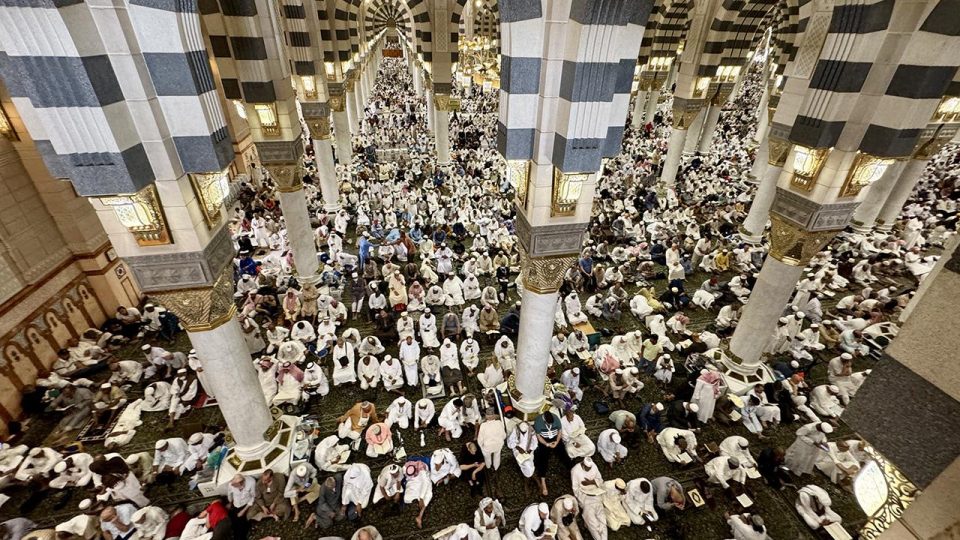 Cuma namazı vaktinin yaklaşmasıyla Mescid-i Nebevi ve çevresinde yoğunluk yaşanırken, Mescid-i Nebevi’nin içinde ve çevresinde yüz binlerce hacı, saf tutarak cuma namazını kıldı.