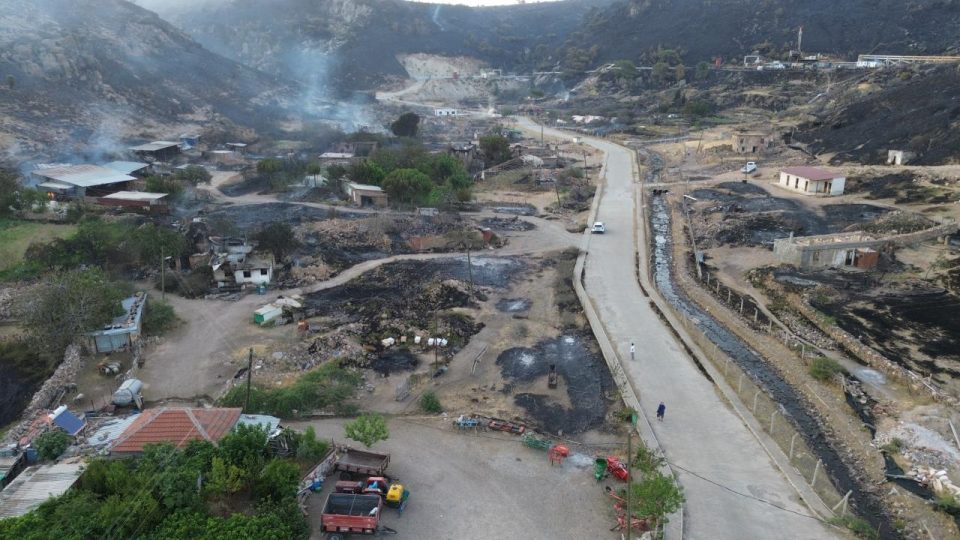 Öte yandan, yangından etkilenen ve içinde jeotermal santral ile tarihi Hüdavendigar Cami’nin bulunduğu Tuzla köyü dron ile havadan görüntülendi.