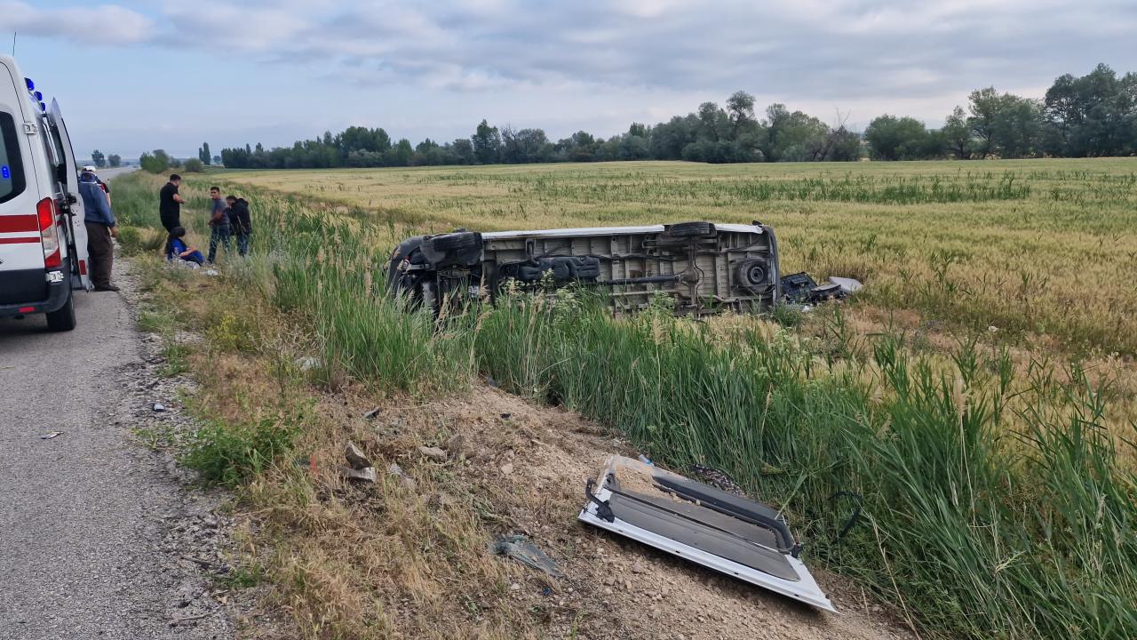 Çorum-Yozgat kara yolunda A.İ. idaresindeki minibüs, Koçhisar Barajı mevkisinde yol kenarına devrildi.