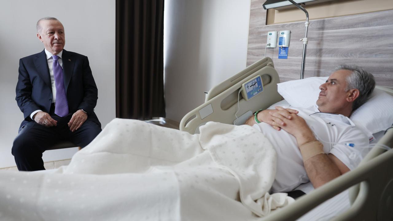 Yalçın’ı hastane odasında ziyaret ederek “geçmiş olsun” temennisinde bulunan Erdoğan, doktorlardan sağlık durumuna ilişkin bilgi aldı.