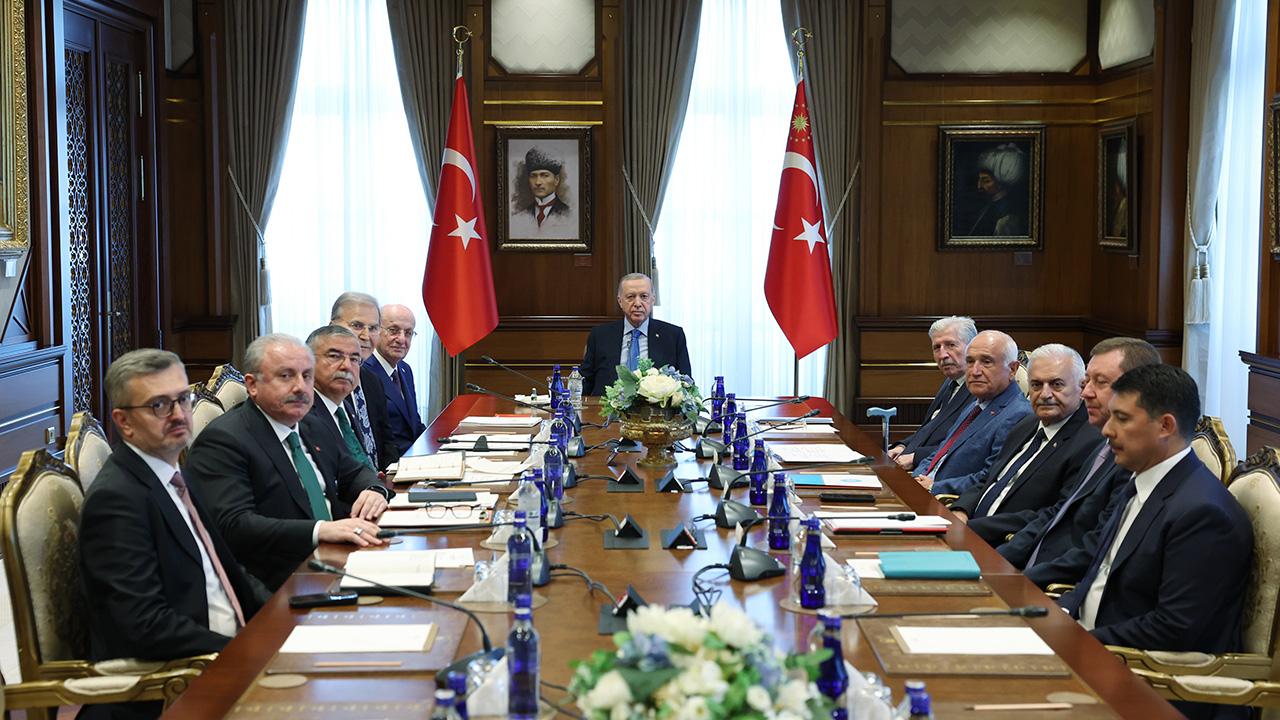 Cumhurbaşkanlığı Külliyesi’nde düzenlenen toplantıya, kurul üyesi eski TBMM Başkanları Köksal Toptan, Binali Yıldırım, Cemil Çiçek, İsmail Kahraman, İsmet Yılmaz, Mehmet Ali Şahin ve Mustafa Şentop ile Cumhurbaşkanlığı İletişim Başkanı Burhanettin Duran, Cumhurbaşkanlığı Özel Kalem Müdürü Hasan Doğan ve Cumhurbaşkanlığı Genel Sekreteri Hakkı Susmaz katıldı.