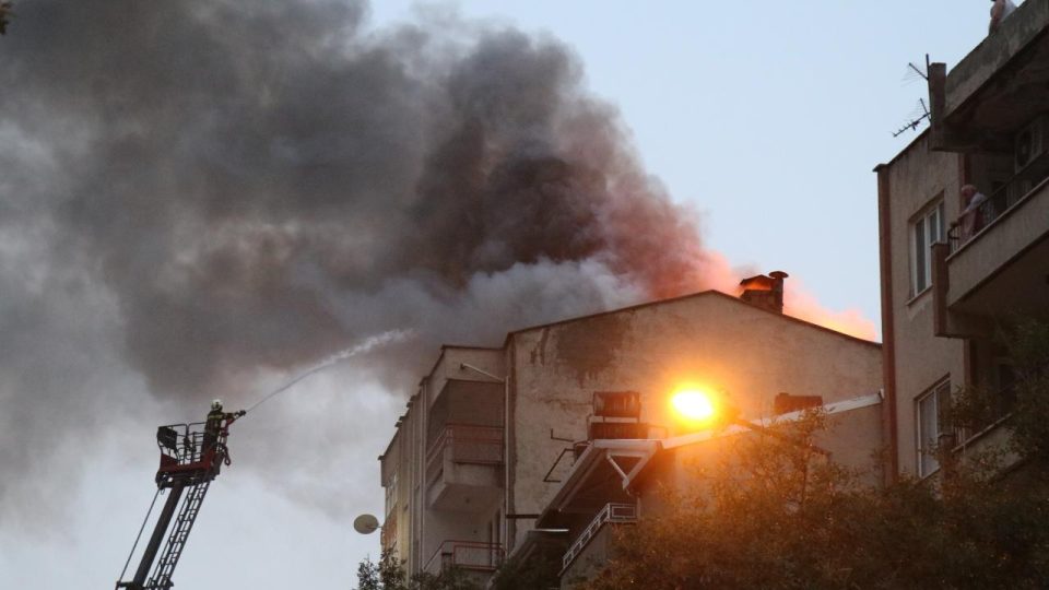 Pelitlibağ Mahallesi Hürriyet Caddesi’ndeki 7 katlı binanın çatısında henüz belirlenemeyen nedenle yangın çıktı.