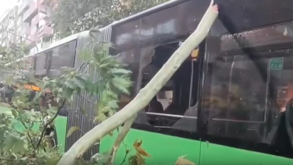 Denizli’de otobüsün üzerine ağaç devrildi