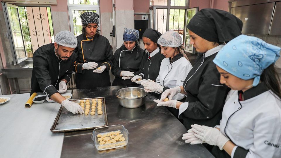 “Bizler akşam yapılan yemeğin ön hazırlığını yapıyoruz. Arkadaşlarımla gelir elde ediyoruz. Bu gelir eğitimimize de katkı sağlıyor. Önce yemek listemiz hazırlanıyor, sonra malzemelerimizin temizliğini ve ayıklamasını yapıyoruz. Burada haftada 3 gün staj yapıyoruz. Hedefim kendi alanımda üniversite okumak. Mezun olduktan sonra beceri eğitimi sınavına gireceğiz ve usta öğreticilik belgesi aldıktan sonra iş yerimizi açma gibi bir avantajımız olacak.”
