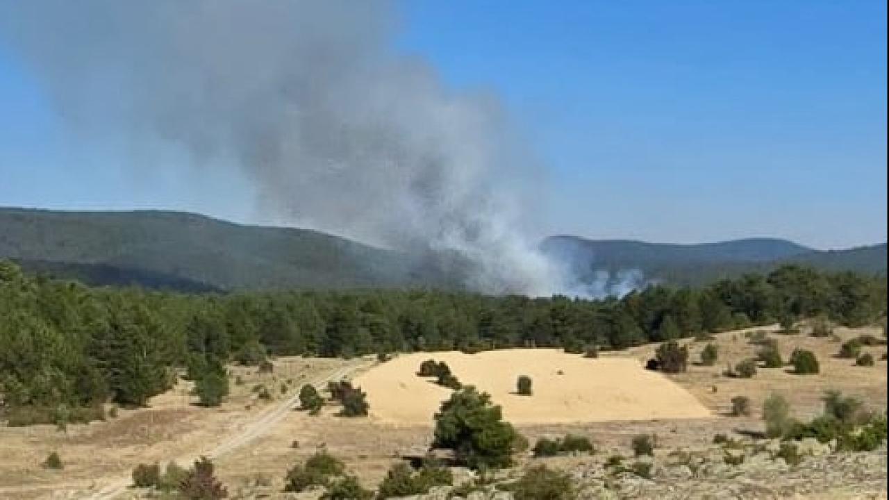 İlçeye bağlı Büyükyayla Mahallesi yakınlarındaki ormanlık alanda henüz bilinmeyen nedenle yangın çıktı.