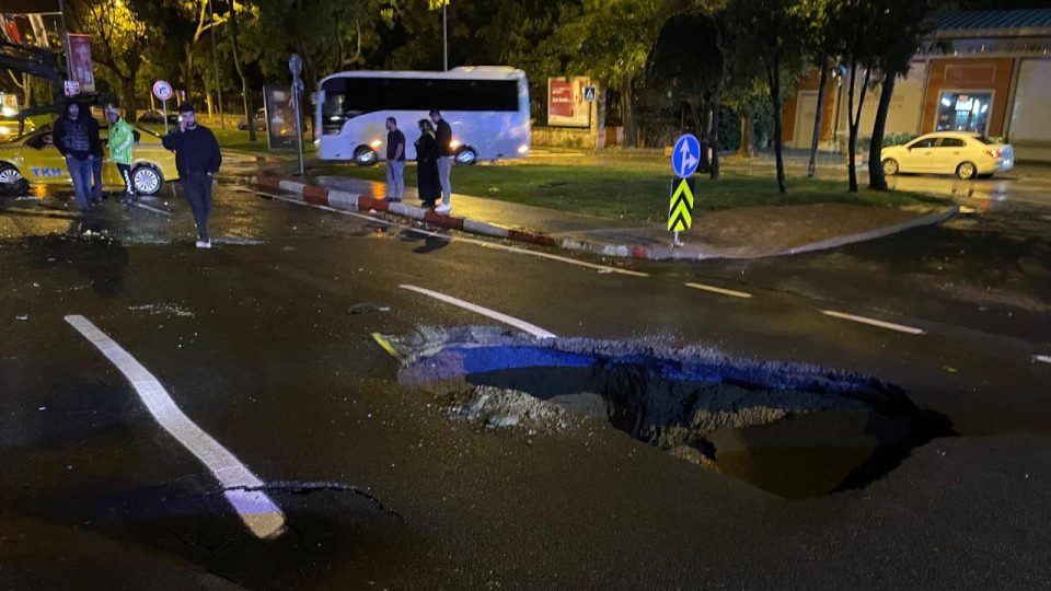 Çökmenin meydana geldiği cadde üzerinde başka kazaların olmaması için ekipler geniş güvenlik önlemleri aldı.