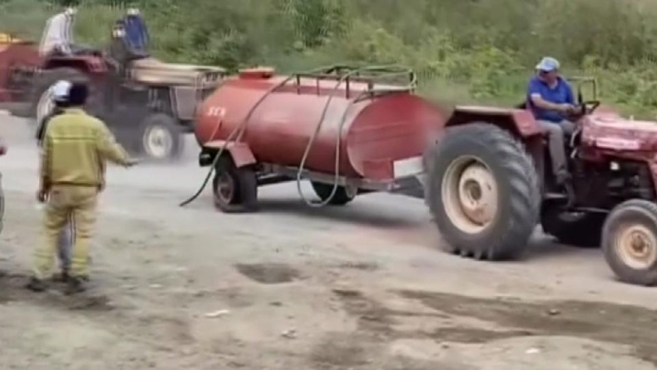 Bu sırada, römorkunda “Balıkesir” yazdığı görülen bir çiftçinin, su dolu tankeri yangın alanına ulaştırmaya çalışırken lastiği patladı.