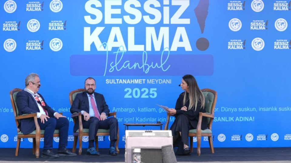 Türkiye Basın Federasyonunun (TÜBAF), İsrail’in Filistin’deki insanlık dışı uygulamalarına dikkati çekmek ve protesto etmek amacıyla Sultanahmet Meydanı’nda düzenlediği ortak canlı yayın sürüyor.