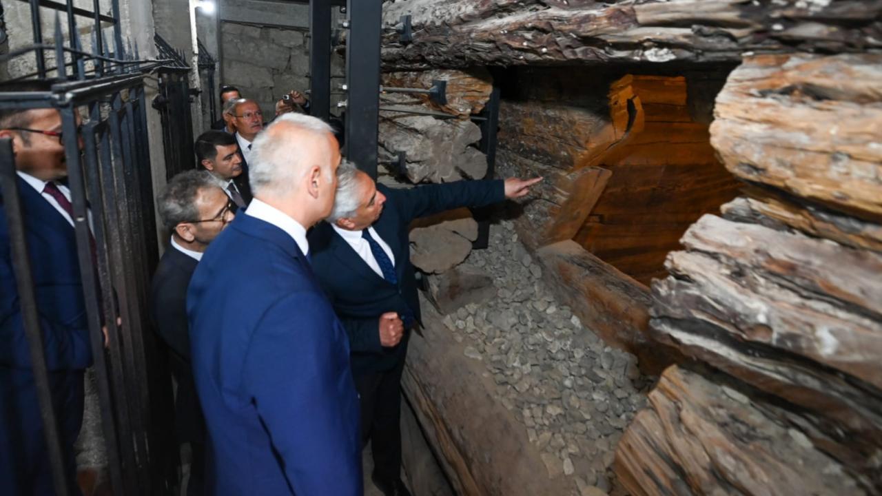 Kültür ve Turizm Bakanı Ersoy, Gordion Müzesi bahçesinde Gordion Antik Kenti’nde yürütülen kazılarda ortaya çıkarılan, Frig kraliyet ailesine ait olduğu değerlendirilen el değmemiş ahşap mezar odasına ilişkin açıklamalarda bulundu.