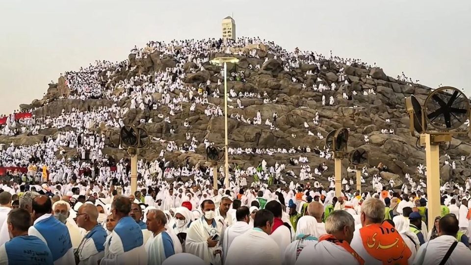 Arafat bölgesindeki bazı hacı adayları ise Cebel-i Rahme’ye çıkarak dua ediyor. Hava sıcaklığının 45 dereceyi aştığı bölgede Cebel-i Rahme çevresinde yoğunluk yaşanıyor.
