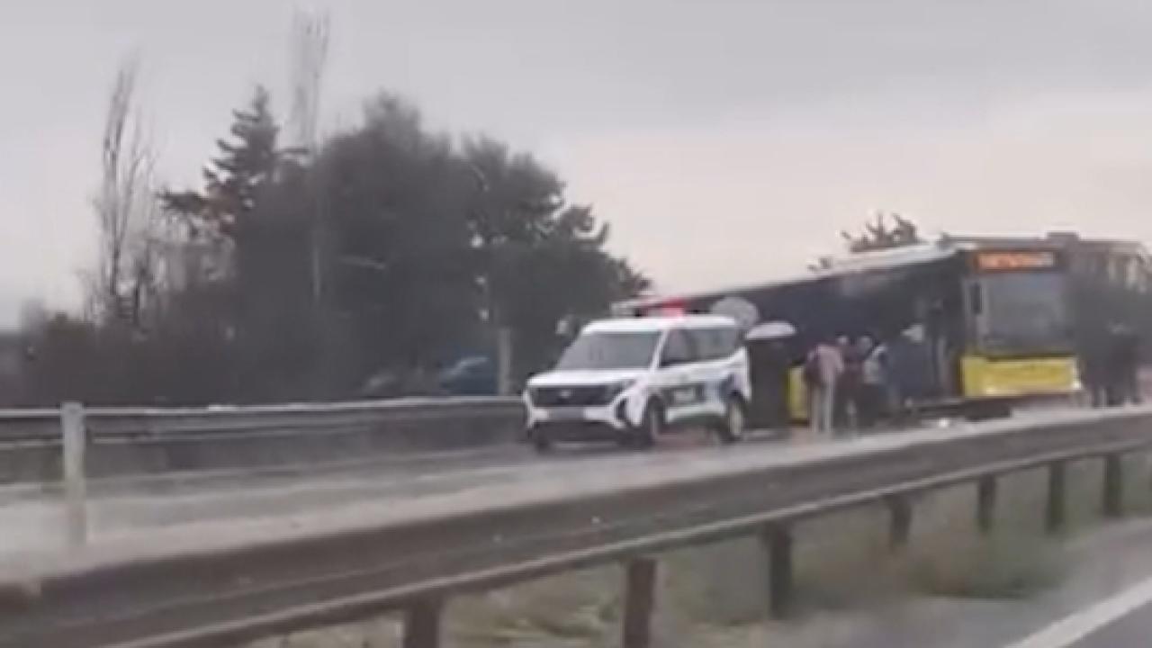 D-100 kara yolu Güzelce mevkisinde seyreden İETT otobüsü, yağış nedeniyle kayganlaşan yolda şoförünün direksiyon hakimiyetini kaybetmesi sonucu kontrolden çıktı.