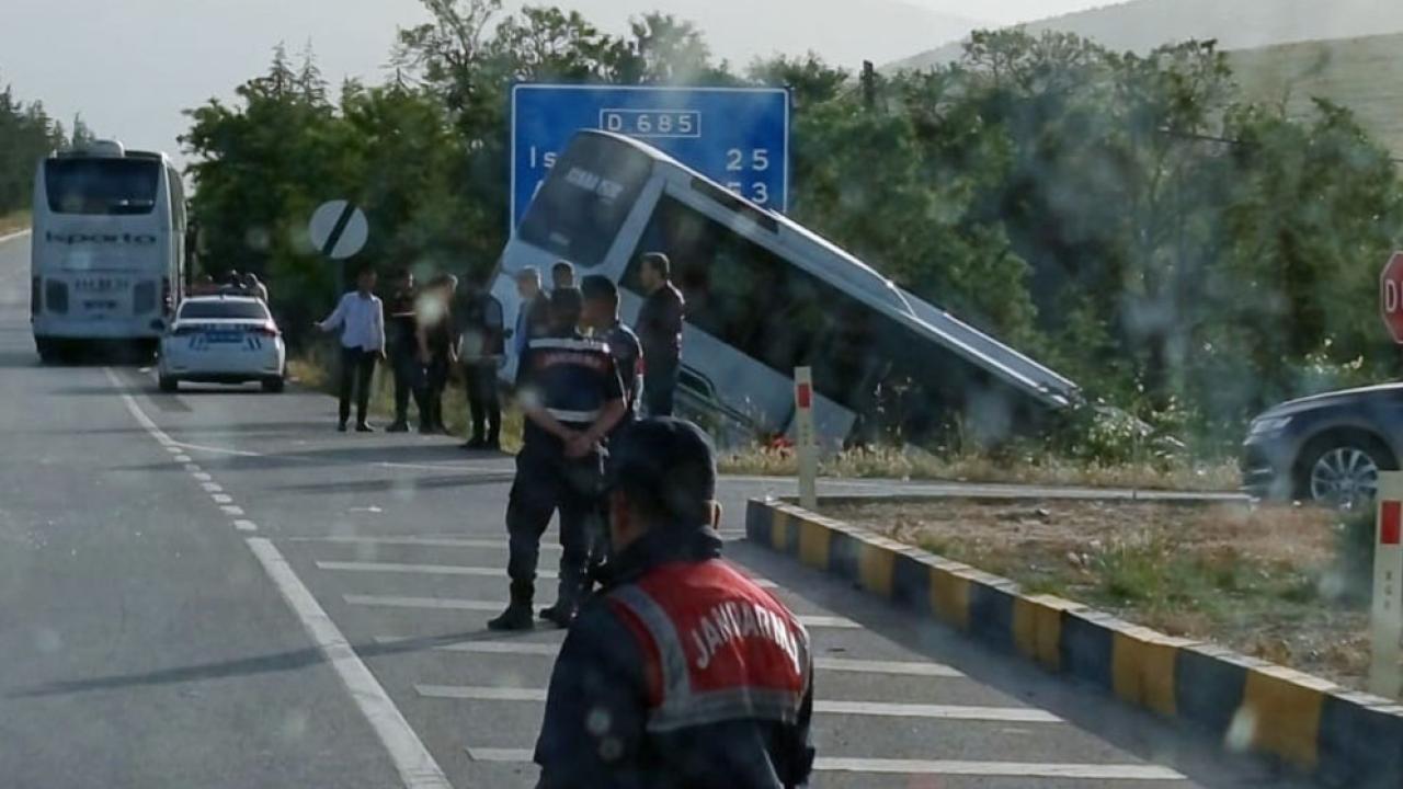 Isparta- Afyon kara yolunun 25’inci kilometresi Baladız köyü kavşağında, saat 05.00 sıralarında günübirlik geziye katılanları taşıyan tur otobüsü, şoförün direksiyon hakimiyetini kaybetmesi sonucu yönlendirme levhalarını devirerek şarampole düştü.