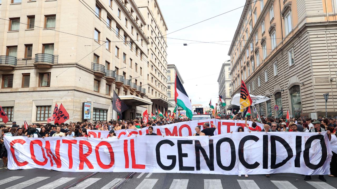 İsrail’in Gazze’ye yönelik Ekim 2023’ten bu yana aralıksız sürdürdüğü saldırılara karşı İtalya’da bugüne kadarki en geniş ve büyük protesto yapıldı.