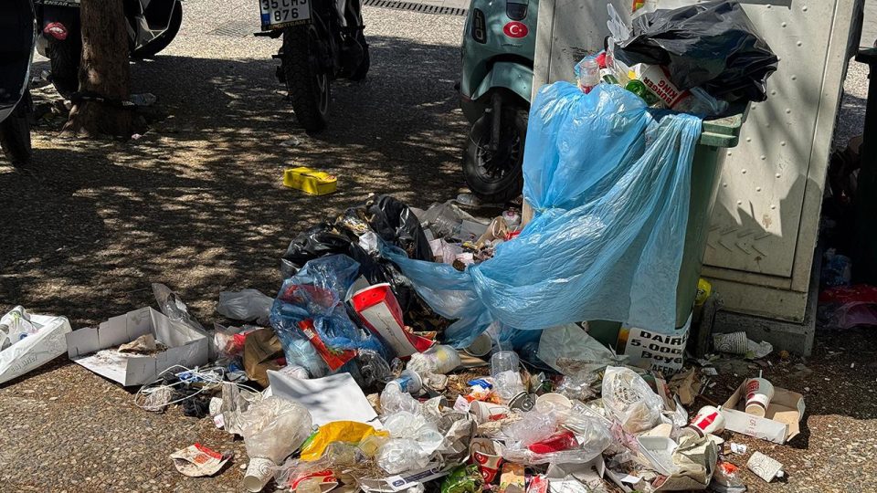 Grevin 6’ncı gününde temizlik hizmetlerinde görevli işçilerin iş bırakması nedeniyle Buca’nın bazı sokaklarında çöp yığınları ve kötü koku oluştu.