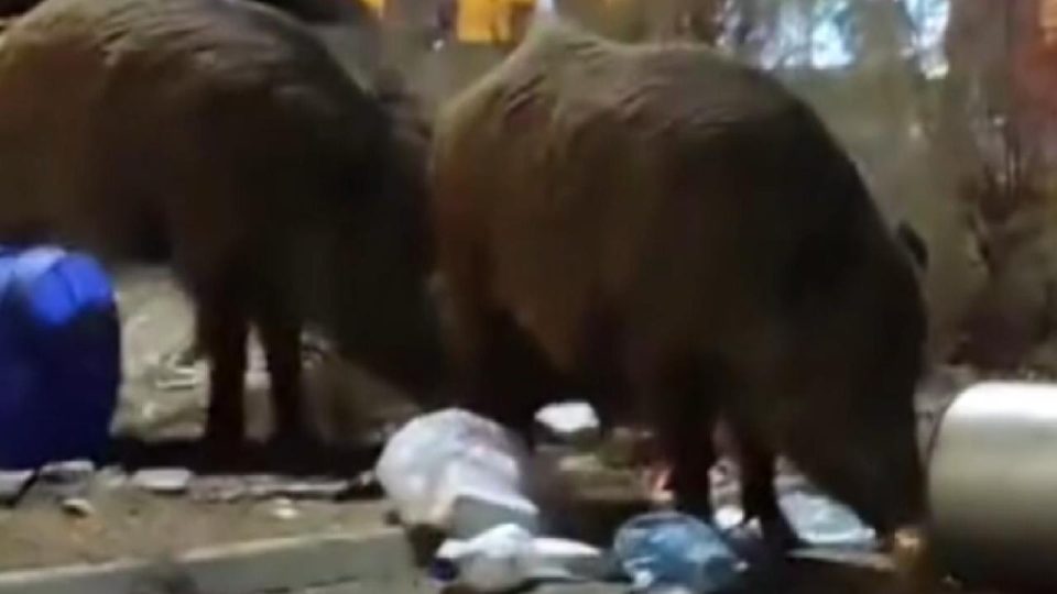 Balçova ilçesinde sıkça görülen domuz sürüleri, dün gece yine kentin caddelerinde özgürce dolaşırken görüldü. Çöp kutularının olduğu bir noktada zamanında toplanmayan çöpler, domuzların ilgisini çekerken, o anlar bir vatandaş tarafından cep telefonuyla kaydedildi.