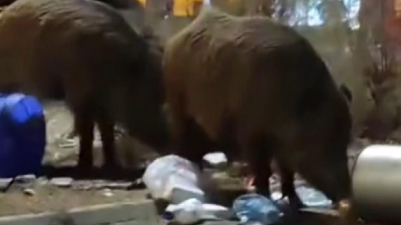Çöp yığınlarını karıştırarak yiyecek arayan domuzlar, iri cüsseleriyle dikkat çekti. Sosyal medyada videonun paylaşılması üzerine bazı vatandaşlar “Şunlara bak fil kadar olmuşlar” yorumlarında bulundu.