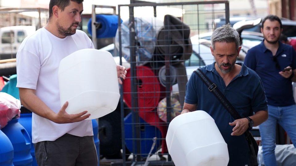 Düzenli kesintilere karşı tedbir almak isteyen İzmirliler, gece kullanmak için bidonlara su dolduruyor. Bu nedenle evsel boyuttaki plastik bidonlara talep arttı.