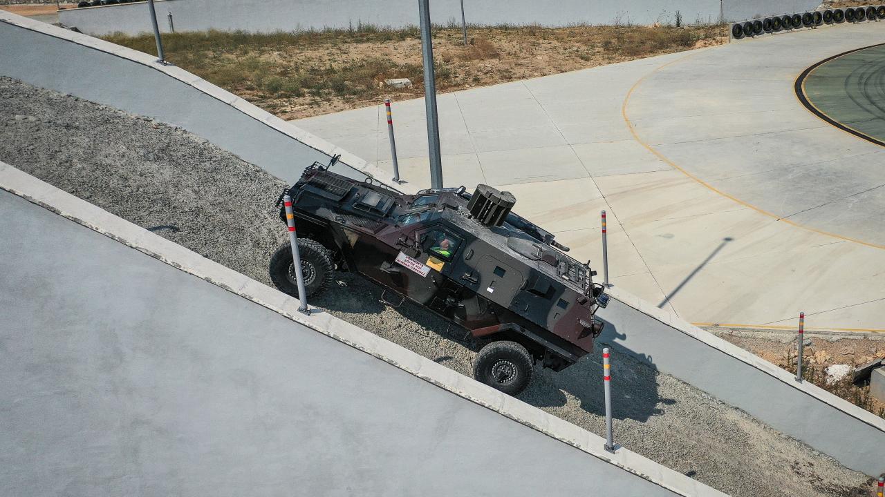 Islak ve çamurlu parkurlarda araçların manevra kabiliyetini öğrenen adaylar, dik rampaları aşarak su dolu havuzundan geçiyor. Yüzde 60’a varan eğimlerde yol alan sürücü adayları, atış poligonlarında farklı mesafelerden araç üzerindeki silah sistemleriyle hedeflere hareket halinde atışlar yapıyor.