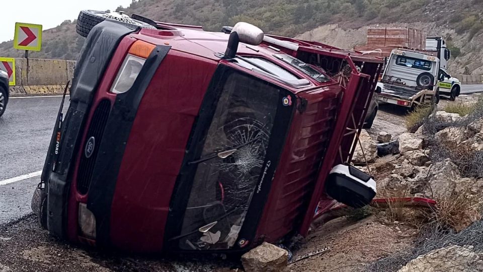 Karabük’ün Eskipazar ilçesinde T.T. idaresindeki kamyonet, İsmetpaşa mevkisinde yol kenarındaki su kanalına devrildi.
