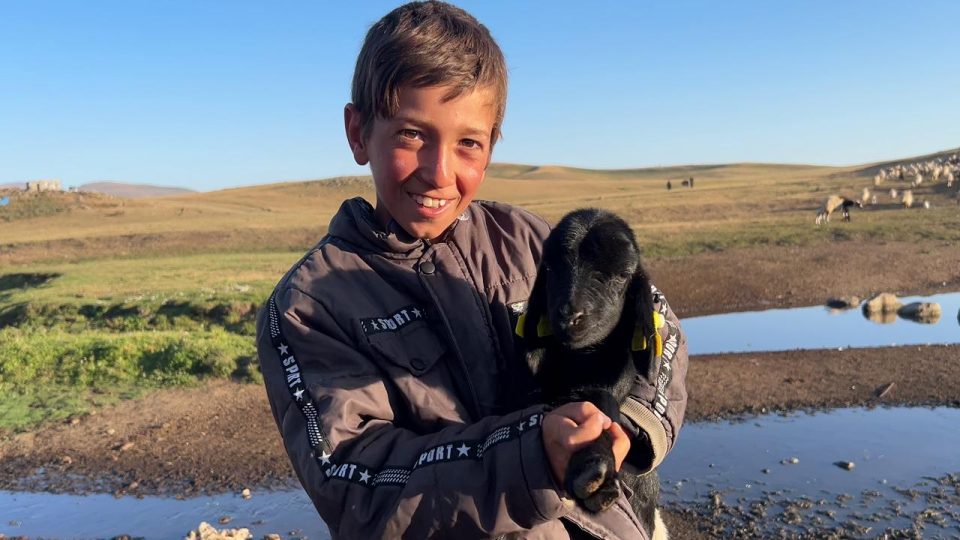 “Çobanlıkta kuzular tatlıdır” diyen Hamza gününü kuzularla dolaşarak geçiriyor.
