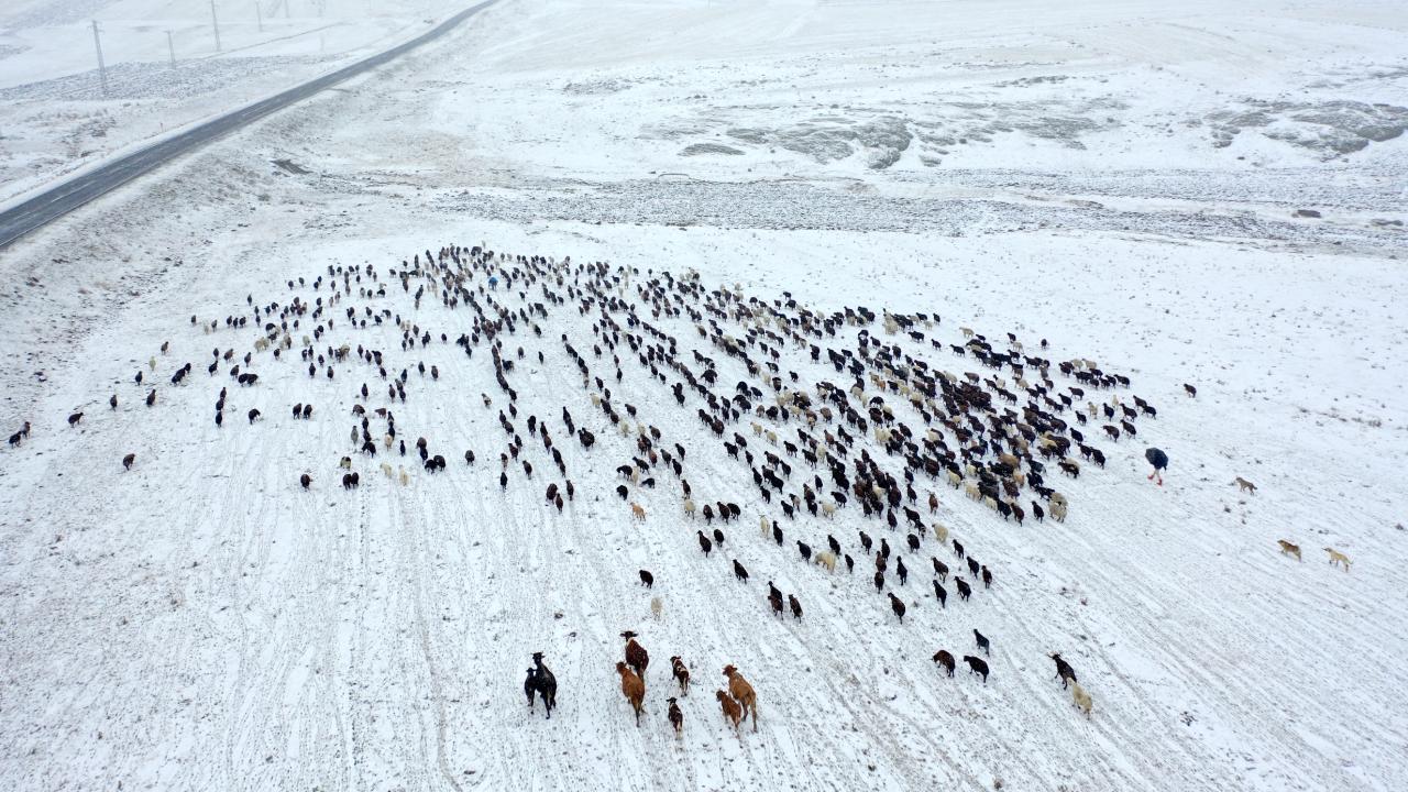 Havaların soğumasıyla dönüş yoluna geçen göçerler, yüzlerce sürüyle ilerlerken kar yağışına yakalandı.