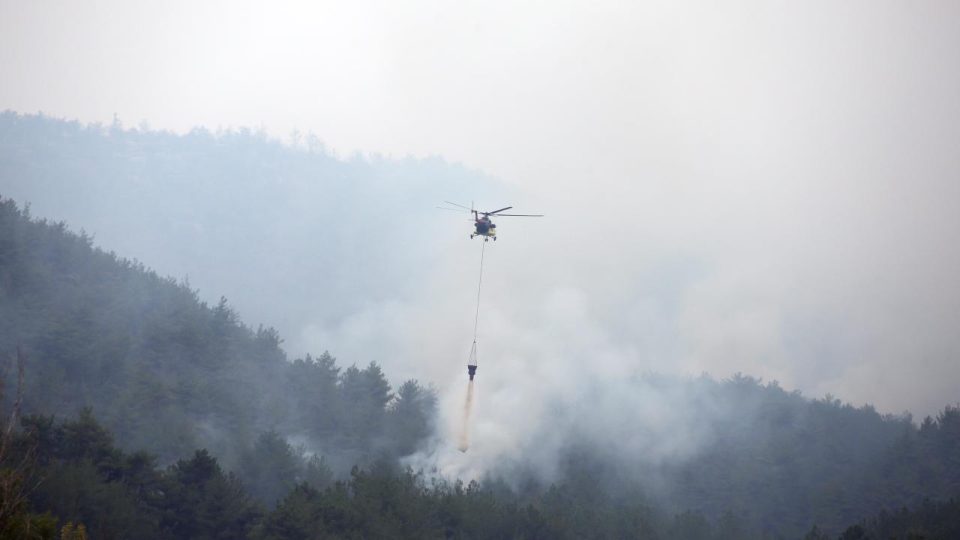 Alevler, 17 helikopter, bir tanker uçak, 21 su tankeri, 32 arazöz, 27 ilk müdahale aracı, 12 iş makinesi, 8 treyler ile kamyon, 47 araç ve 437 personelle söndürülmeye çalışılıyor.