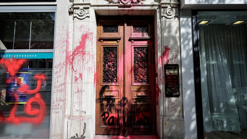 Şirketin Paris’teki ofisinin kapısına kırmızı sprey boyayla “El Al Soykırım Hava Yolları” ve “Filistin kazanacak” ifadeleri yazılırken, kapıya kanı sembolize eden çizimlerin de yapılması dikkati çekti.