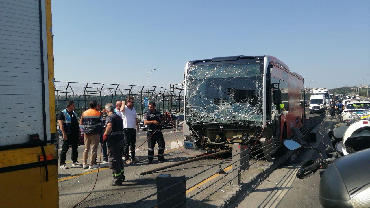 Beylikdüzü yönünde ilerleyen bir metrobüs, sürücüsünün hakimiyetini kaybetmesi üzerine Haliç Köprüsü’nde kontrolden çıktı.