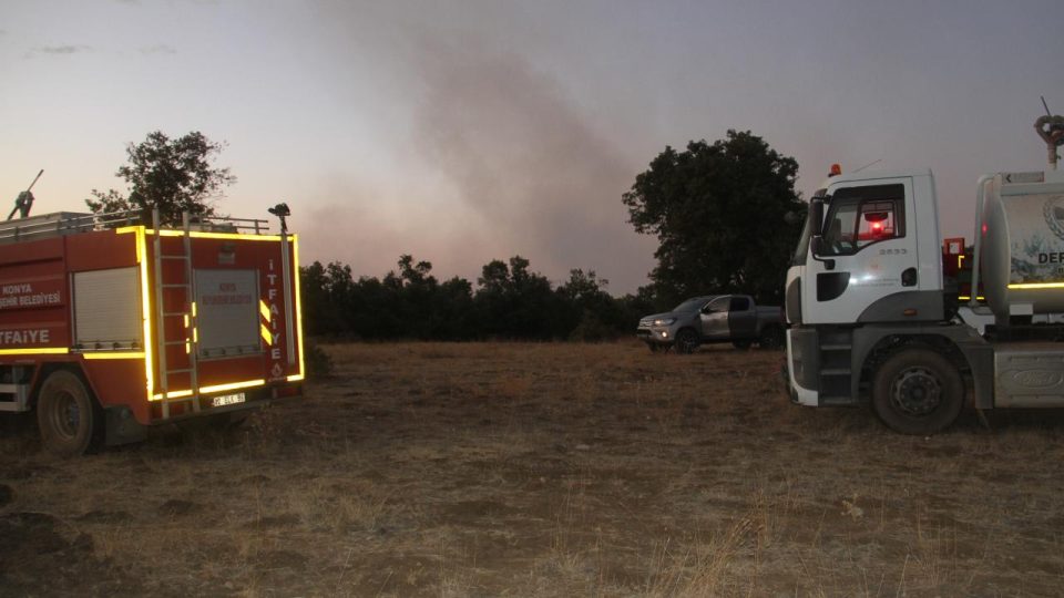 İhbar üzerine Beyşehir Orman İşletme Müdürlüğüne ait arazözler, Konya Büyükşehir Belediyesine bağlı itfaiye araçları ile çevre ilçe belediyelerinin iş makineleri yangın bölgesine sevk edildi.