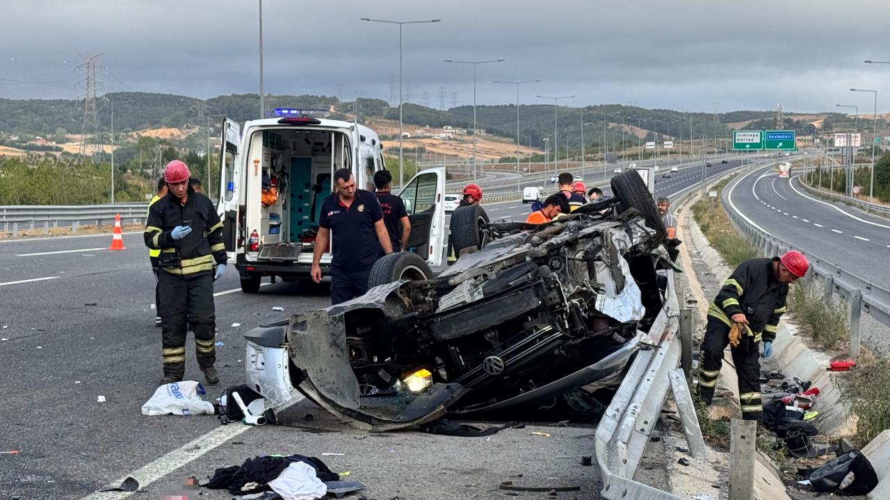 Kuzey Marmara Otoyolu’nun Kocaeli’nin Körfez ilçesi Sevindikli yol ayrımında Mikail A. idaresindeki yabancı plakalı otomobil, bariyer ve yönlendirme levhası direğine çarparak takla attı.