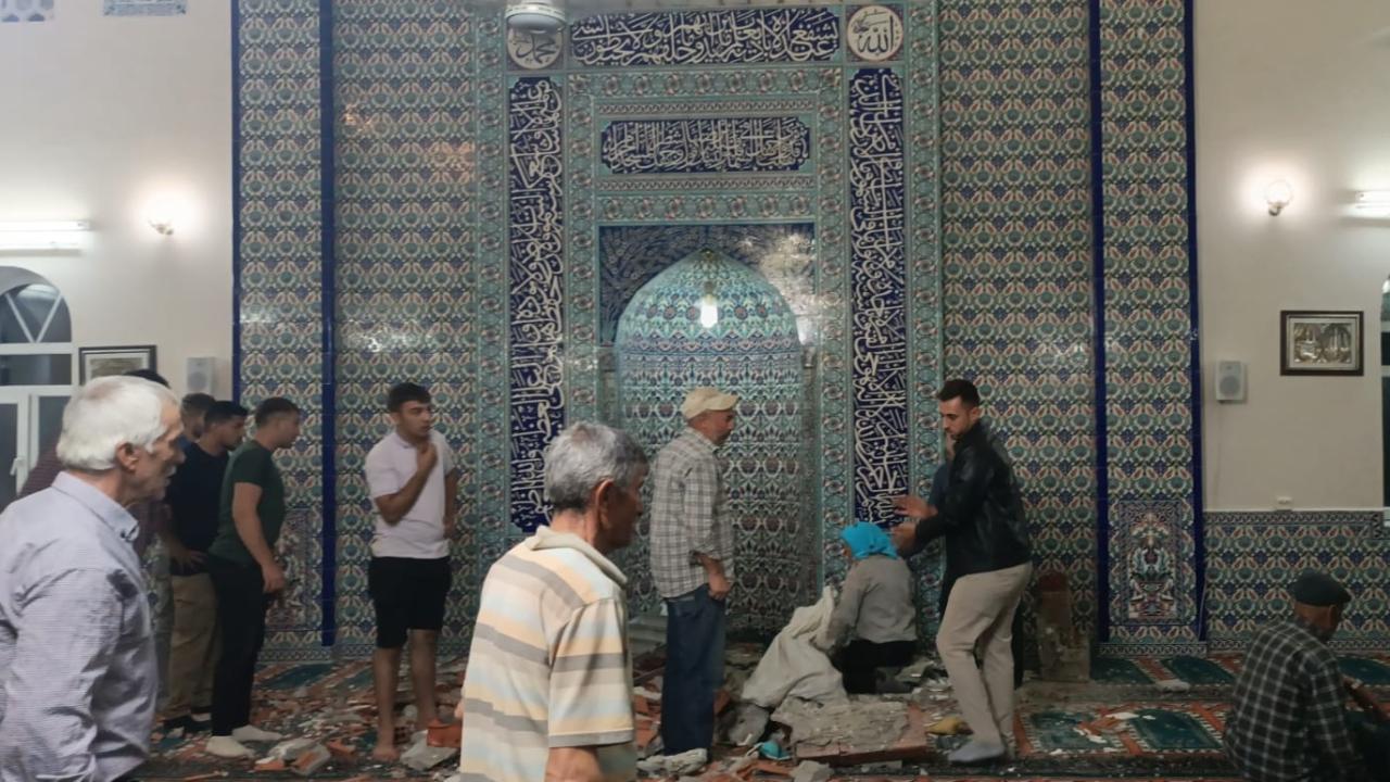 Dün Kobaklar Mahallesi Camii’nde yatsı namazının ardından mihrabın üzerindeki tuğlalardan yapılmış taç düştü.