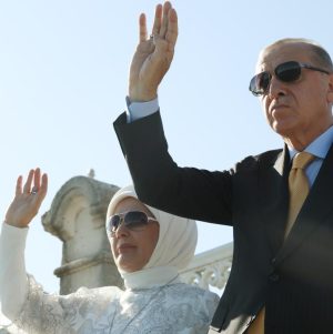Çalışma ofisinin açık alanında gemileri seyreden Erdoğan, mürettebata ve tören vesilesiyle gemide bulunan vatandaşlara el salladı.