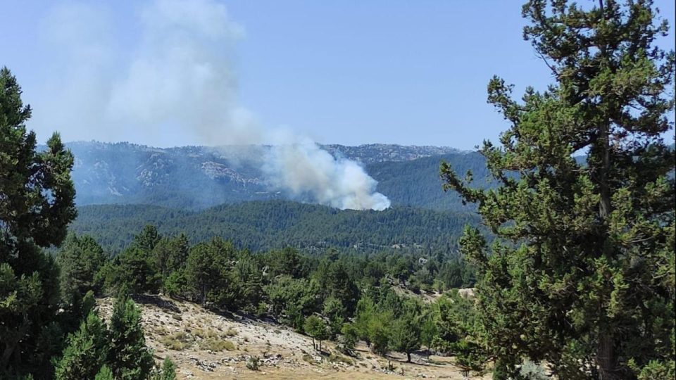 Ekiplerin, yangının kontrol altına alınması için havadan ve karadan başlattığı çalışmalar sürüyor.