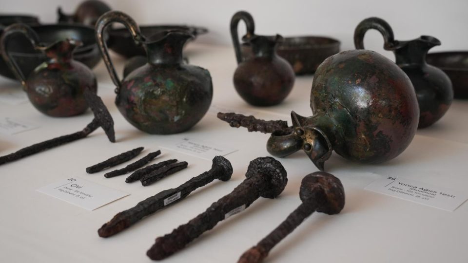 “Ahşap konstrüksiyonlu mezar odası, zamanla üzerindeki taş ve toprak baskısıyla çökmüş. Buna rağmen 100’den fazla eseri, bunlardan bronz ve demirden oluşan 88 tanesi müzeliktir, yerinde sağlam bulduk. 47 tanesi restore edildi ve edilmeye devam ediliyor. İçlerinde büyük kazanlar var. Üç saç ayaklı çömlekler var. Demirden yapılmış tütsülükler var.