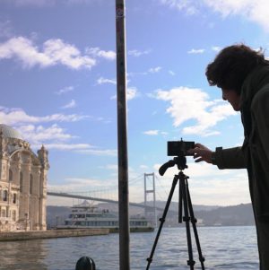 Dengesini kaybeden kadın sürücüye düştüğü esnada karşıdan gelen motosiklet çarptı. İlginç kazada, kadın motosiklet sürücüsü hafif yaralandı.